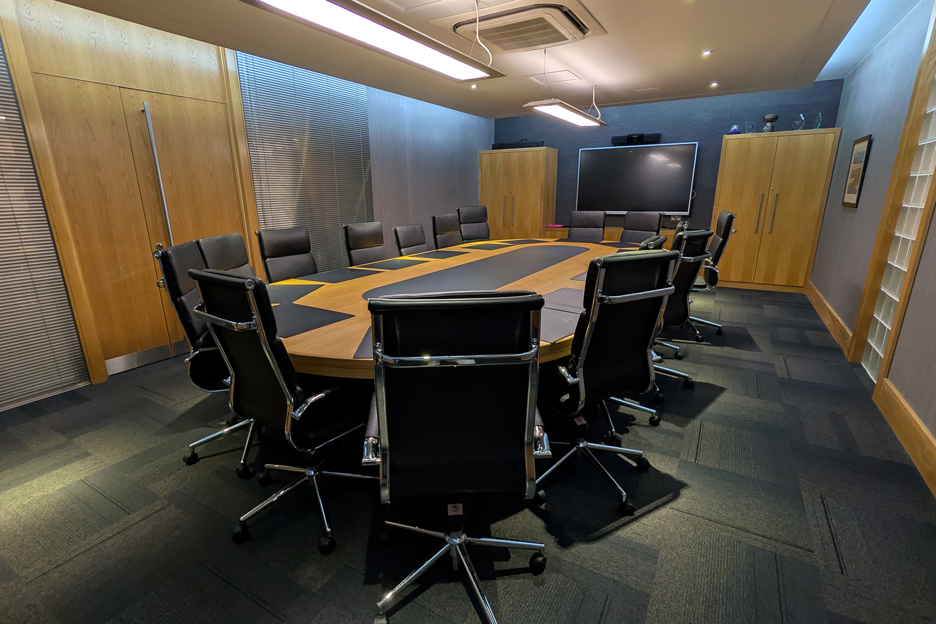 Ideal for executive meetings and small training events, the board room is equipped with a state of the art audio/visual system and smartboard technology. It benefits from plush furnishings, sympathetic lighting and complete privacy.